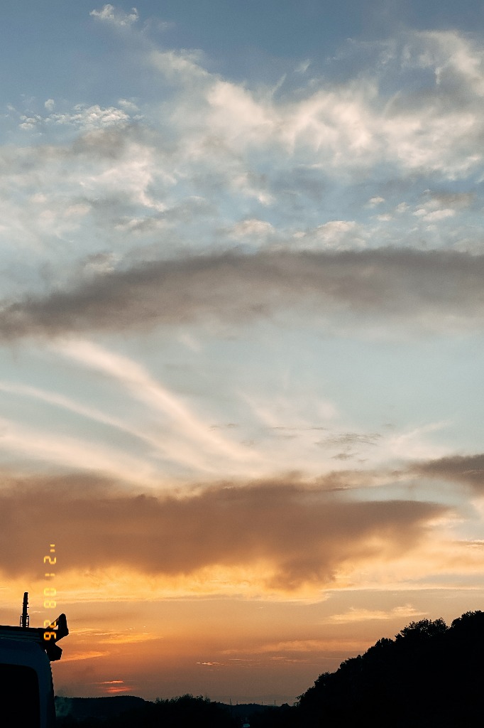 犬の散歩中に夕焼けが綺麗なので見とれてしまう